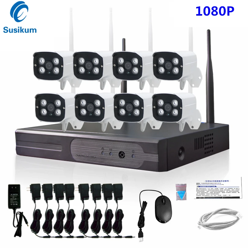 2MP HD Wireless CCTV System 8CH wi-fi NVR kit Outdoor IR Night Vision IP 1080P Wifi Camera Security