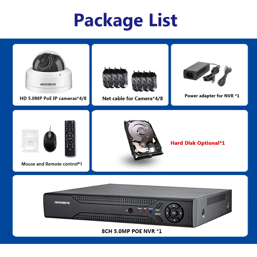 Review Top H.265 5MP POE NVR Audio in System 8pcs 48V Super 2592X1944 Security Dome Camera kit Onvif 8CH CCTV