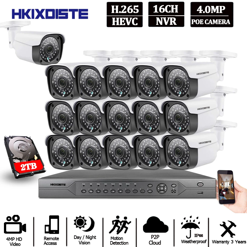 H.265 8CH 4K 16CH 5MP CCTV System POE NVR Kit 16 Outdoor Waterproof 4.0MP Security IP Camera P2P Vi