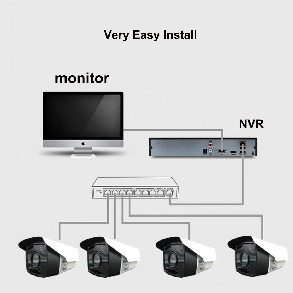 4ch 5MP Audio POE Kit H.265 Camera System CCTV Security NVR Outdoor Waterproof 50m View IP Camera S