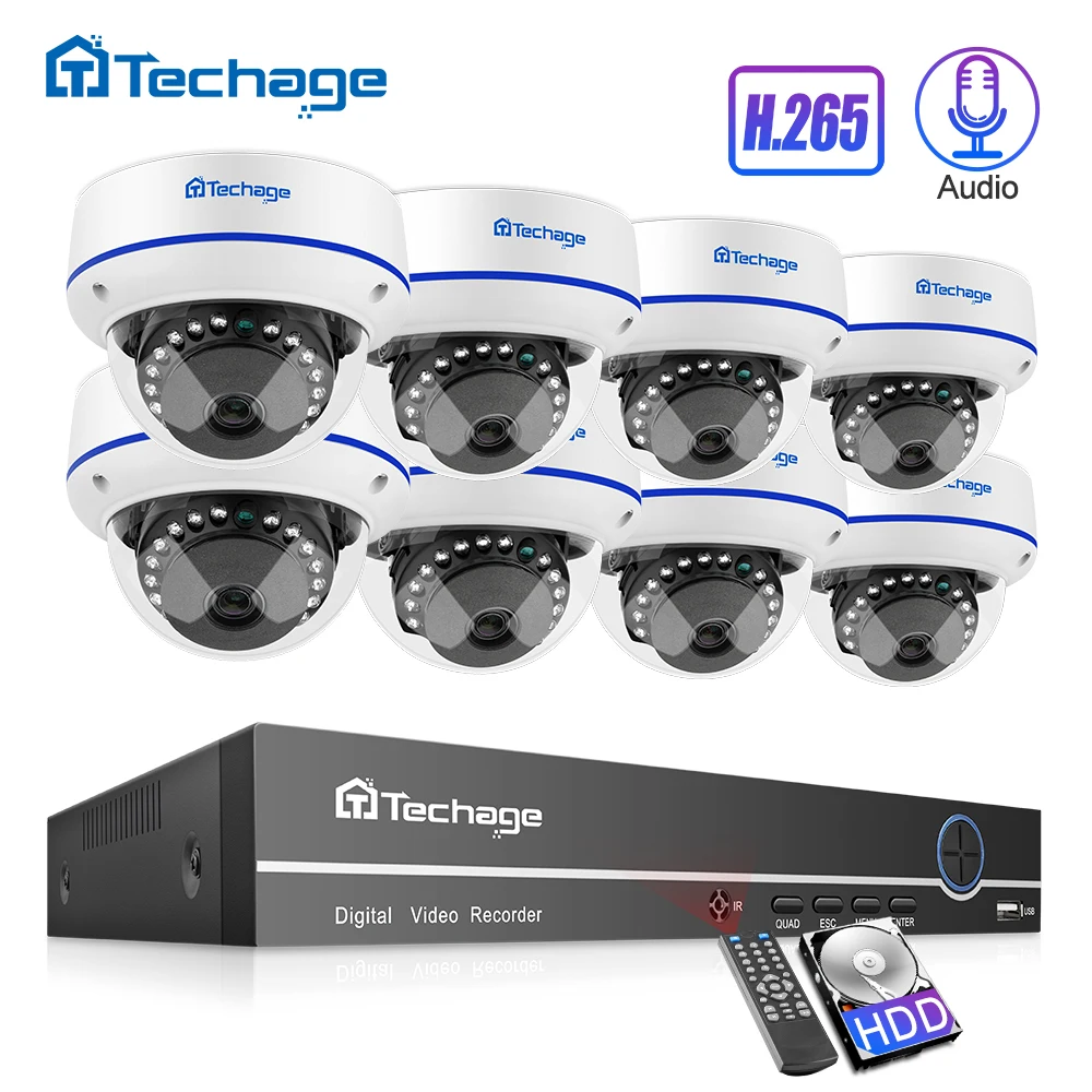 HOT SALE Techage H.265 8CH 1080P POE NVR Kit CCTV Security System 2MP Audio Record Indoor Dome IP Camera Vid